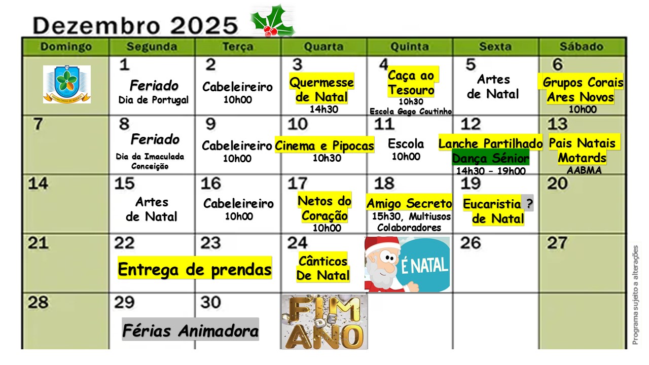 HomeAtividadesAtividades e Aniversários :: Dezembro 2025 Atividades e Aniversários :: Dezembro 2025Atividades / 1 de Dezembro, 2025 Parabéns aos nossos utentes de dezembro