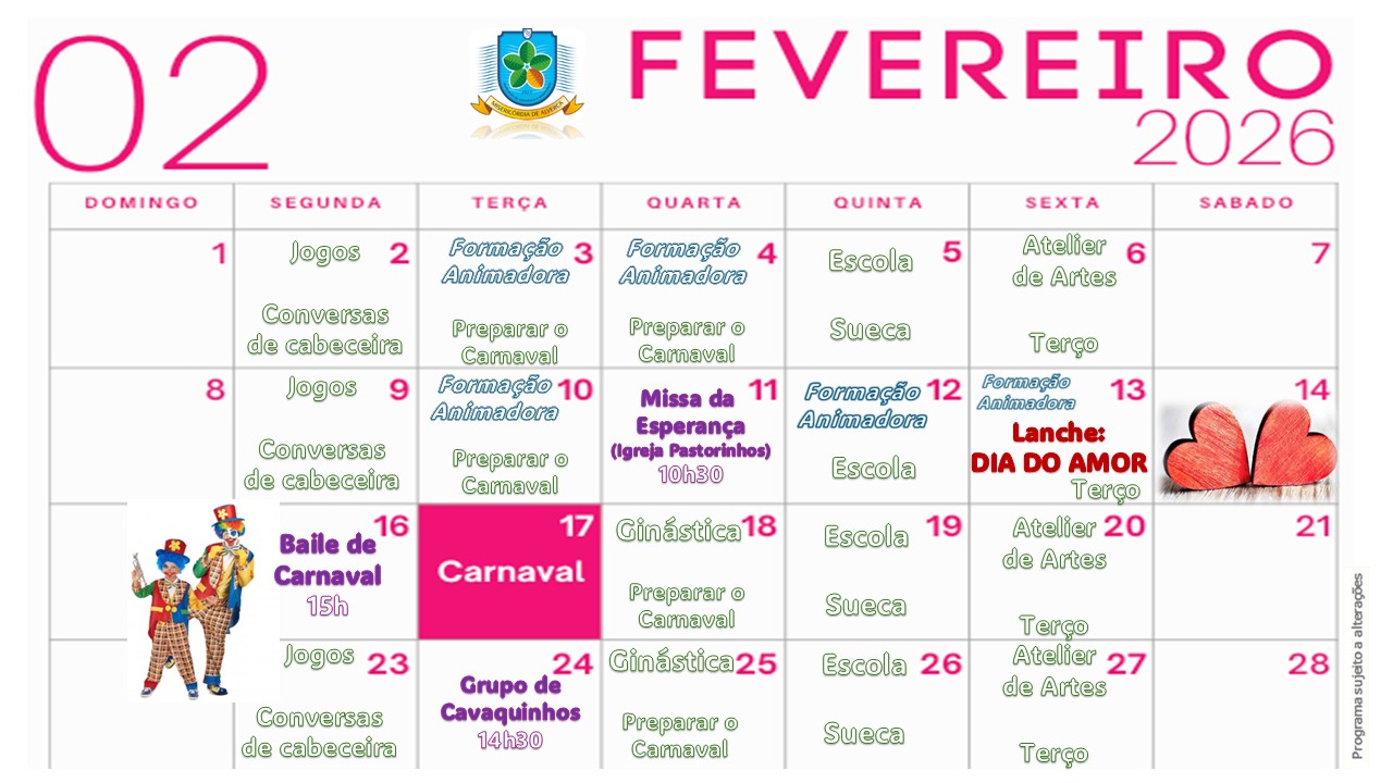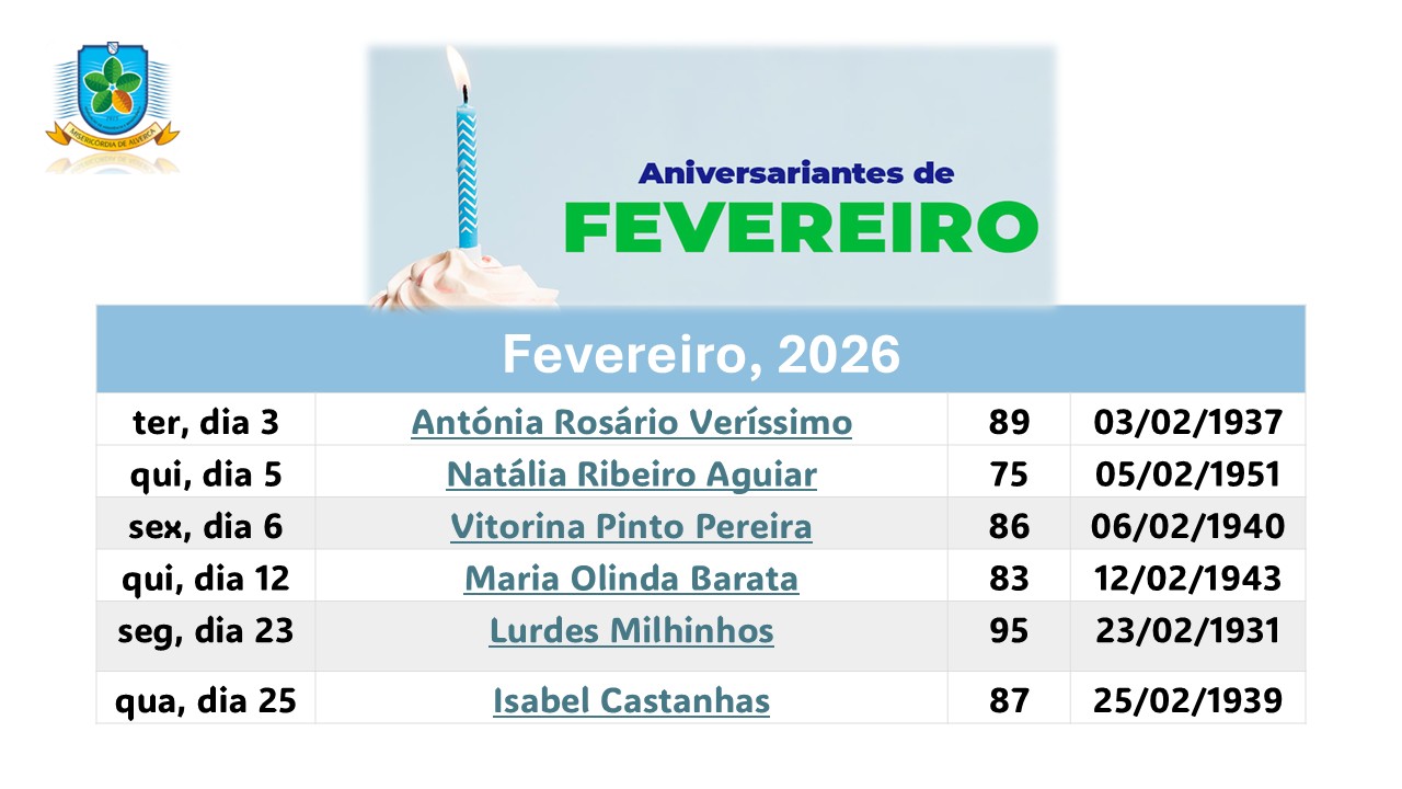 HomeAtividadesAtividades e Aniversários :: Fevereiro 2026 Atividades e Aniversários :: Fevereiro 2026Atividades / 1 de Fevereiro, 2026 Parabéns aos nossos utentes de fevereiro