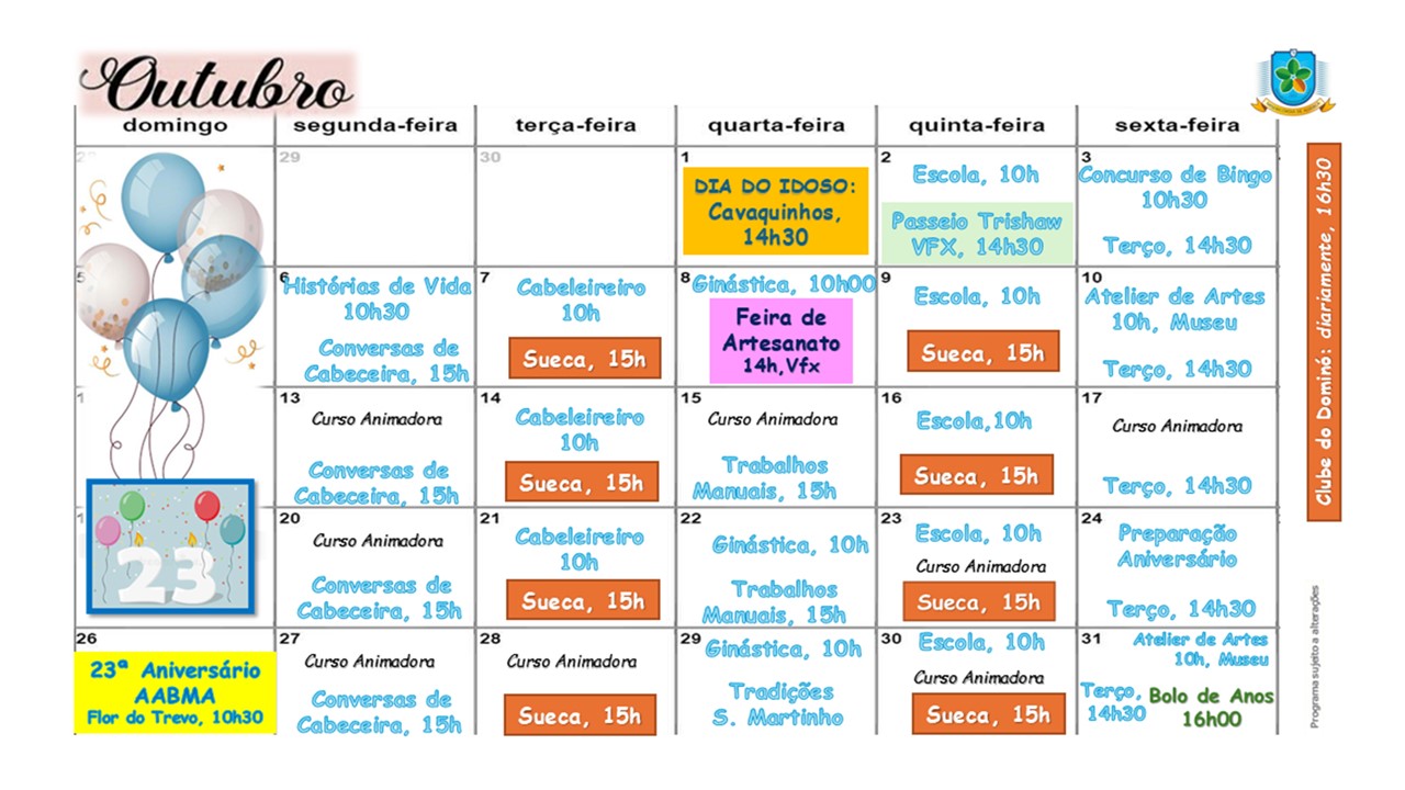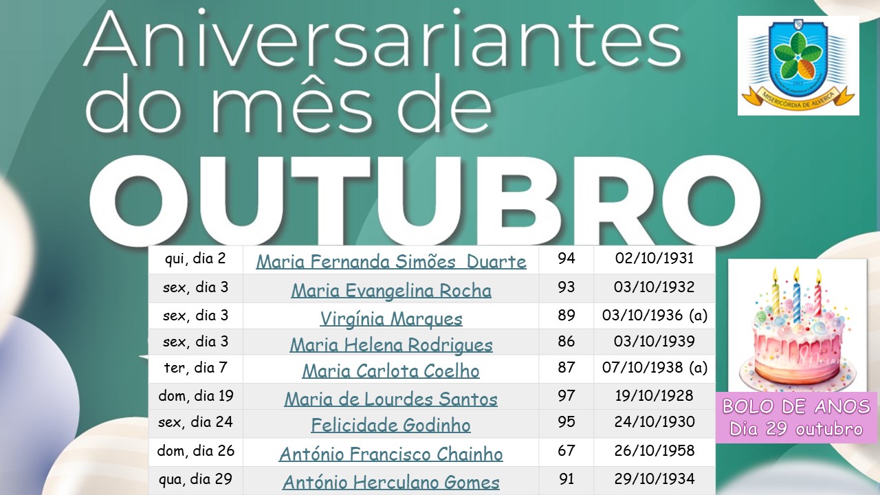 HomeAtividadesAtividades e Aniversários :: Outubro 2025 Atividades e Aniversários :: Outubro 2025Atividades / 30 de Setembro, 2025 Parabéns aos nossos utentes de outubro